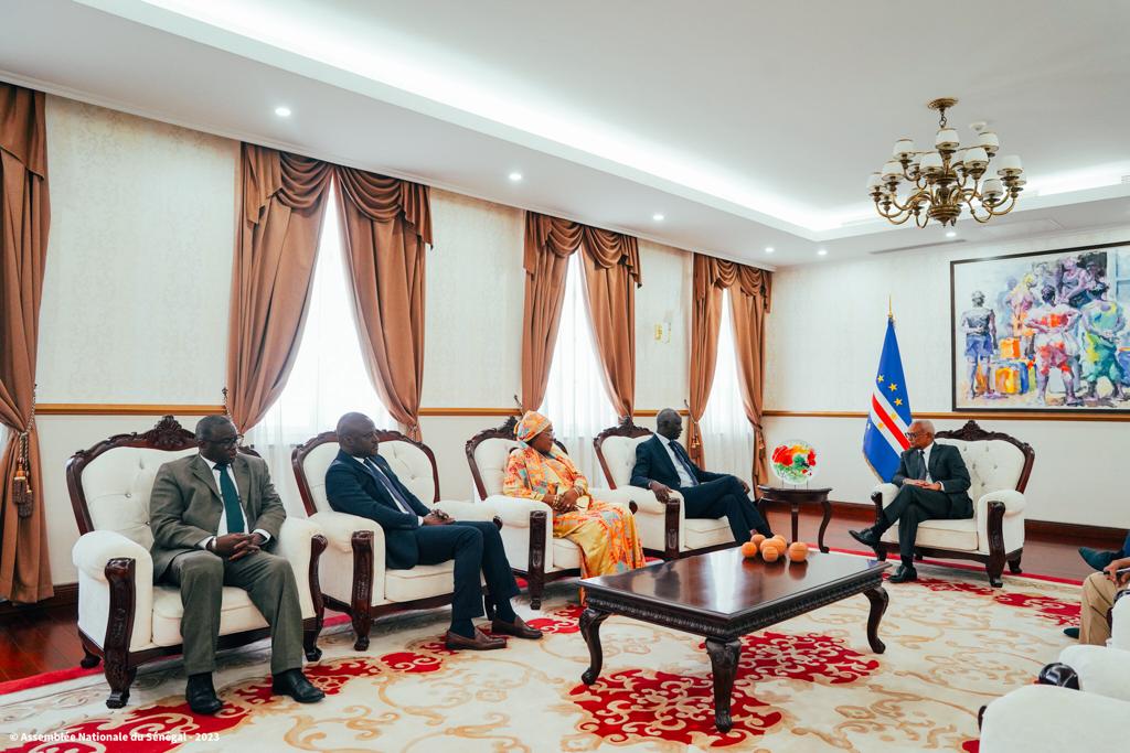 Le président de l’Assemblée nationale, Amadou Mame Diop, a effectué une visite officielle au Cap-Vert, sur invitation de son homologue Austélino Tavares Correia. Ils ont signé un protocole d’accord traduisant l’engagement du Sénégal et du Cap-Vert à renforcer le dialogue entre leurs parlements.  Pour le chef du Parlement capverdien, cette visite permettra d’établir les bases d’une coopération parlementaire fructueuse entre les deux pays qui ont déjà à leur actif plus de 60 accords, dans divers domaines. Un communiqué de l’Assemblée nationale précise que le président Amadou Mame Diop, reçu avec les honneurs, a eu un tête-à-tête avec le président Austélino Tavares Correia, avant une séance de travail élargie aux deux délégations, au Palais de l’Assemblée nationale. Il était accompagné de membres du Bureau de l’Assemblée nationale, de députés, de membres de son cabinet et de l’administration parlementaire. Amadou Mame Diop s’est réjoui des convergences de vue entre lui et son homologue cap-verdien. Il a souligné les modèles démocratiques que représentent les deux pays à travers le pluralisme et le libre jeu démocratique qui se matérialisent dans les Assemblées des deux pays Dans l’après-midi de ce lundi 24 juillet 2023, Amadou Mame Diop a été reçu respectivement, par le Premier ministre, le Dr José Ulisses Correiea e SILVA et par le président de la République du Cabo-Verde José Maria Pereira Neves.