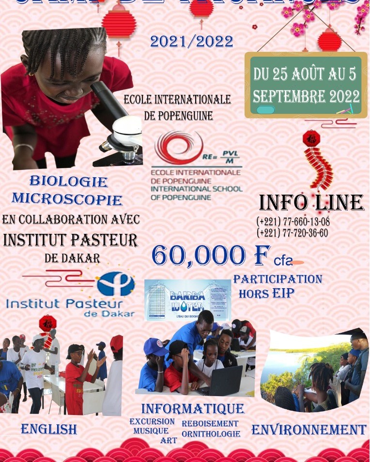 L’École Internationale de Popenguine (EIP) vise a fournir un enseignement moderne ancré sur les valeurs de travail, de service et de patriotisme. Le camp de vacances qu’elle organise du 25 aout au 5 septembre 2022 fait la part belle à la microscopie, l’art, l’anglais, le reboisement ou encore l’ornithologie.