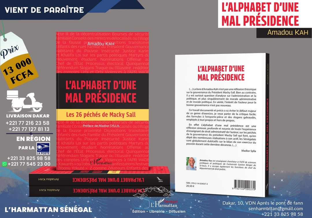 Le livre d’Amadou Kah n’est pas une réflexion théoriquesur la gouvernance du Président Macky Sall. Bien au contraire, il y est surtout question d’analyse sur l’administration et la politique, et plus singulièrement de morale administrative et de morale politique. En vérité, l’intérêt de l’auteur pour la bonne gouvernance n’est pas nouveau. Ce travail documenté et précis a su éviter le défaut majeur de ce genre d’exercice, je veux parler de la critique facile, des formules à l’emporte-pièce et des slogans galvaudés, employés à tout propos et hors de propos. En effet  »L’alphabet d’une mal présidence » est une réflexion sérieuse, profonde et nourrie de toute l’expérience d’enseignant de droit administratif de l’auteur, sur les péchés de la gouvernance du président Macky Sall qui font, qu’en dépit des nombreuses réalisations à son actif, les Sénégalais sont globalement dubitatifs sur le bilan de son exercice dupouvoir durant cette dernière décennie. (…)
