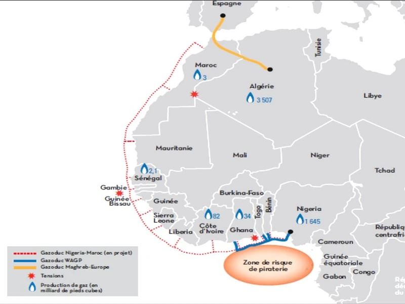 Annoncé il y a plusieurs mois, ce projet de Gazoduc Nigeria-Maroc devra longer la côte ouest-africaine depuis le Nigeria, en passant par le Bénin, le Togo, le Ghana, la Côte d’Ivoire, le Liberia, la Sierra Leone, la Guinée, la Guinée Bissau, la Gambie, le Sénégal, la Mauritanie pour prendre fin au Maroc.