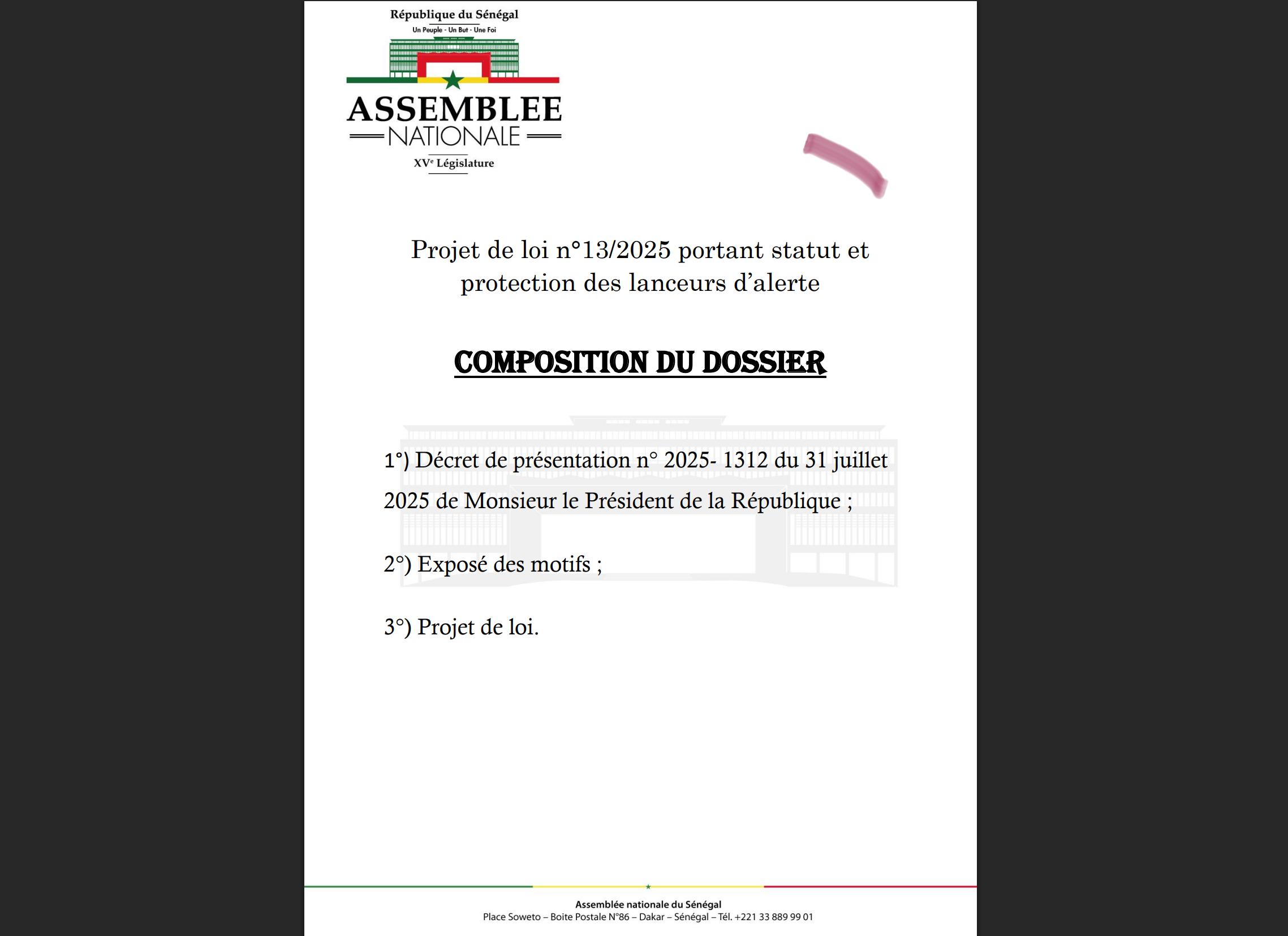 #PDF – Projet de loi n°13/2025 portant statut et protection des lanceurs d’alerte