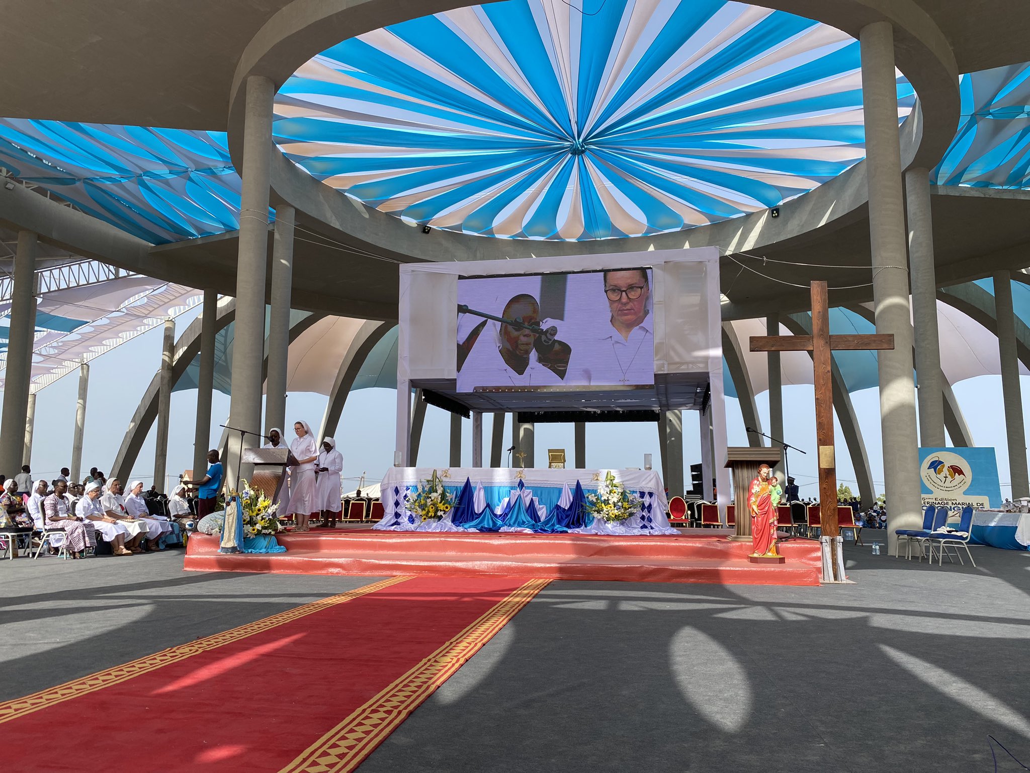 La célébration de la messe a démarré depuis 10heures en présence de nombreuses délégations. Elle est présidée par l’évêque de Tambacounda, Mgr Paul Abel Mamba. L’animation est également assurée par la coordination des chorales dudit diocèse, qui couvre les régions de Tambacounda et Kédougou. La construction du nouveau sanctuaire marial de Popenguine a été financé par le chef de l’Etat à hauteur de 2,5 milliards de FCFA dans le cadre du projet de modernisation des villes religieuses.