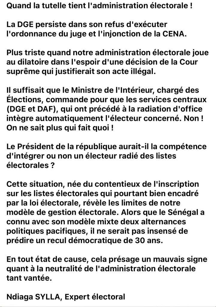 Cette situation, née du contentieux de l’inscription sur les listes électorales qui pourtant bien encadré par la loi électorale, révèle les limites de notre modèle de gestion électorale. Alors que le Sénégal a connu avec son modèle mixte deux alternances politiques pacifiques, il ne serait pas insensé de prédire un recul démocratique de 30 ans.