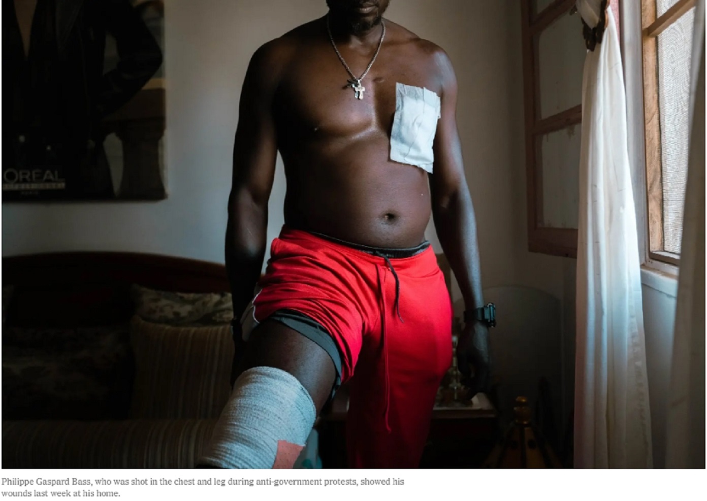 Touché par balles lors des manifestations, Philippe Gaspard Bass montre ses blessures au New York Times
